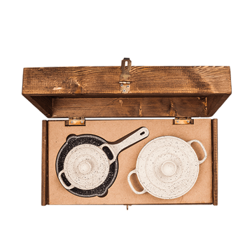 سرويس 5 پارچه چدن یک نمونه منحصر به فرد دیگر از ظرف غذای کودک نالینو است که در طرح و رنگ جذاب و چشم نواز تولید میشود. این سرویس از یک جعبه چوبی برخوردار است که خاص بودن آن را دوچندان کرده است.
